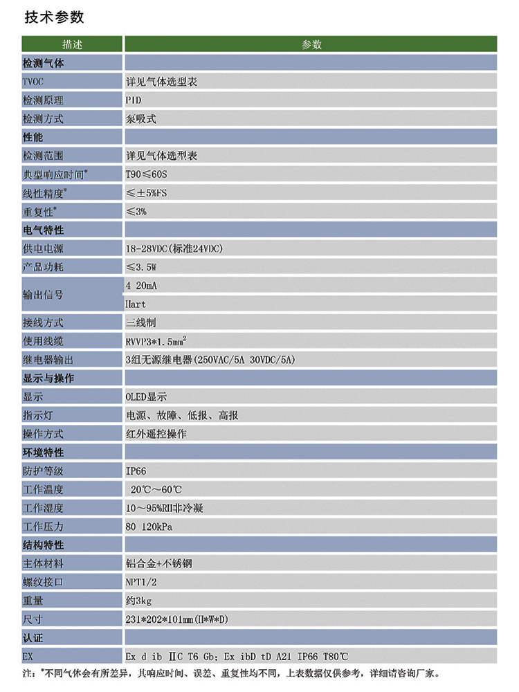 艾伊科技AG316氣體檢測變送器適用于檢測危險區(qū)城中TVOC氣體的含量。產(chǎn)品采用聲光報(bào)警一體化設(shè)計(jì),可有效預(yù)警TVOC氣休泄?jié)M危險;模塊化設(shè)計(jì),維護(hù)方便;產(chǎn)品配有紅外通控器,可實(shí)現(xiàn)完全無開蓋操作。IP66防護(hù)等級可適用于各類惡劣場合。產(chǎn)品采用內(nèi)置泵設(shè)計(jì),可準(zhǔn)確檢測揮發(fā)性有機(jī)物。